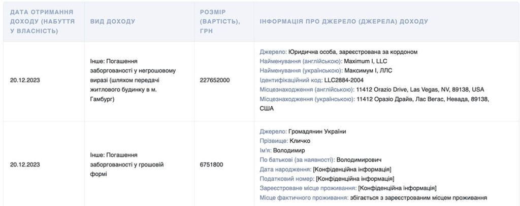 Триповерхову садибу у Німеччині Кличку, нібито, передав його брат Володимир в межах погашення боргу. А разом з цим – ще майже 7 мільйонів гривень.
