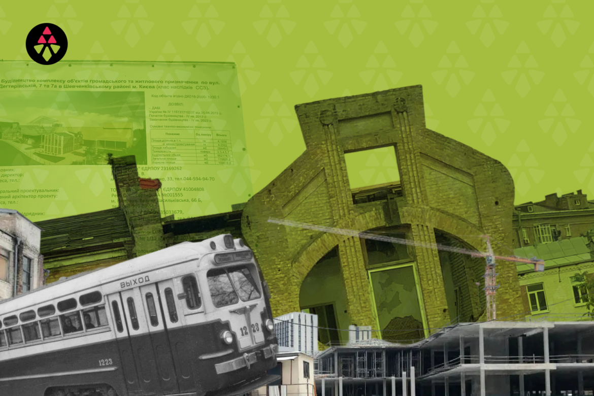 Наприкінці травня цього року на столичній Лук’янівці, на вулиці Дегтярівській, 7-Б, забудовник відновив демонтаж історичної будівлі трамвайно-тролейбусного управління.
