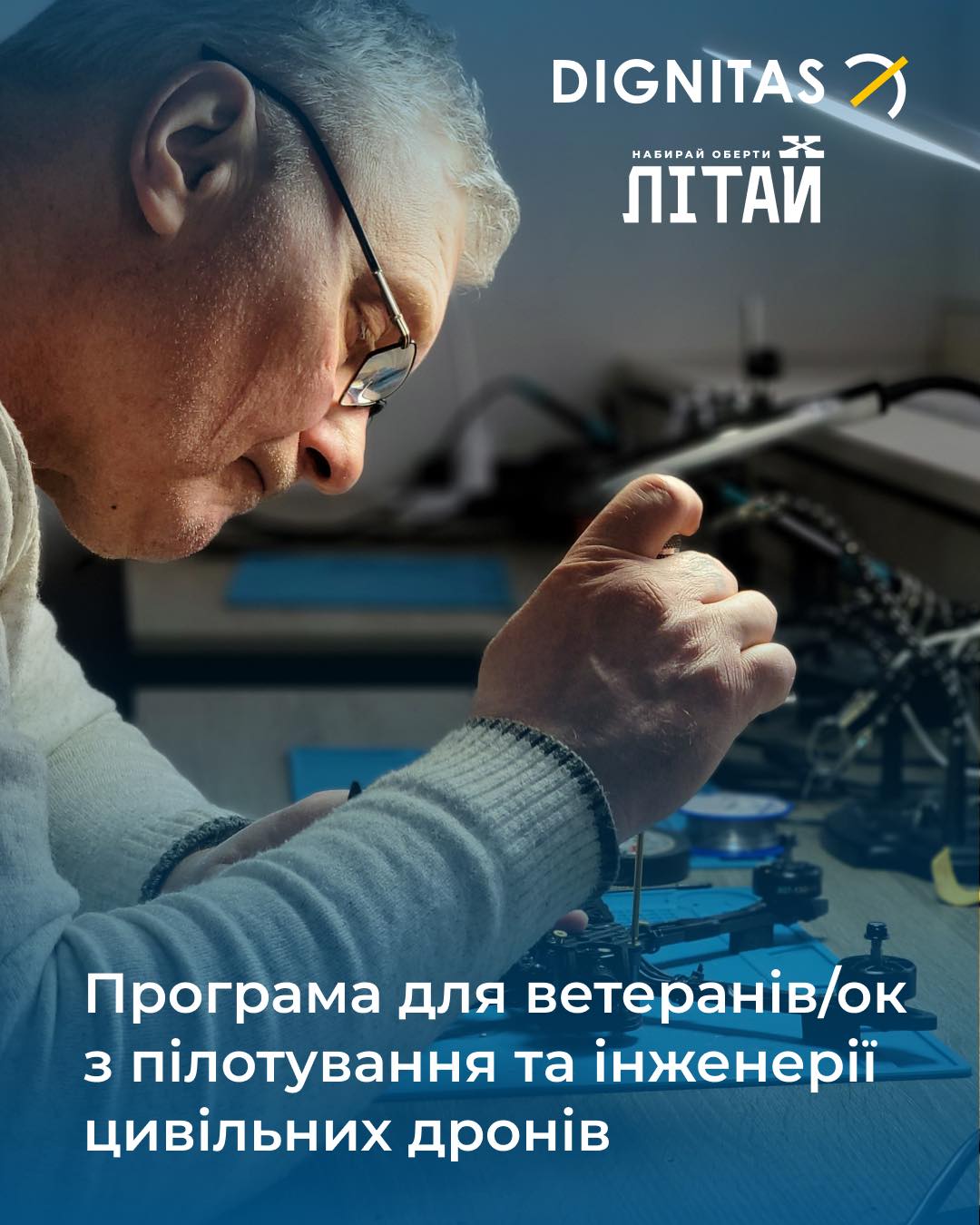 Ветеранів у Києві та в Бучанському районі Київської області запрошують на базовий безкоштовний курс роботи з цивільними дронами