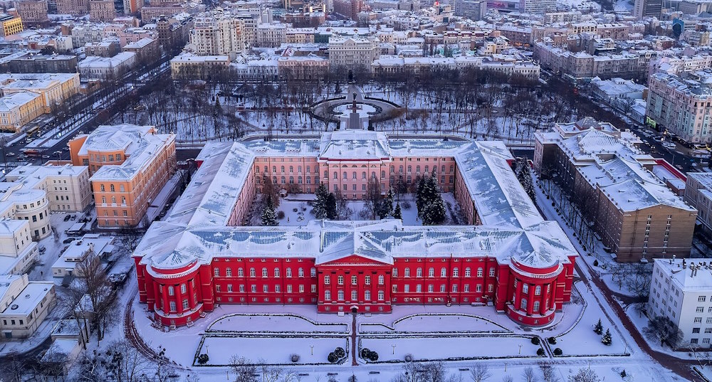 Фотографія червоного корпусу Київського національного університету імені Тараса Шевченка в зимову пору посіла друге місце на етапі міжнародного конкурсу Wiki Loves Monuments.