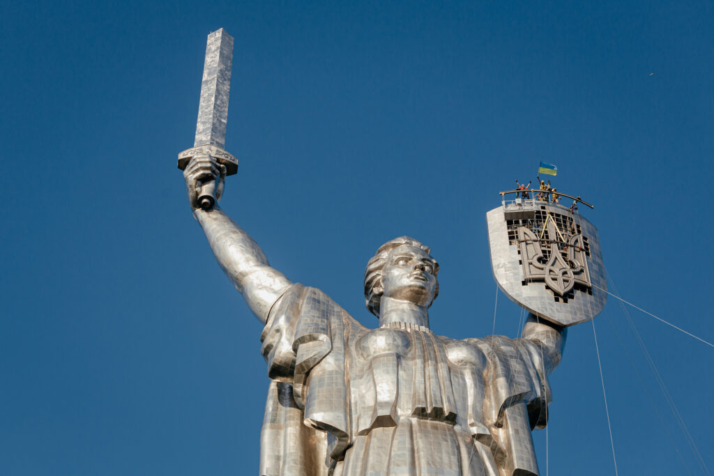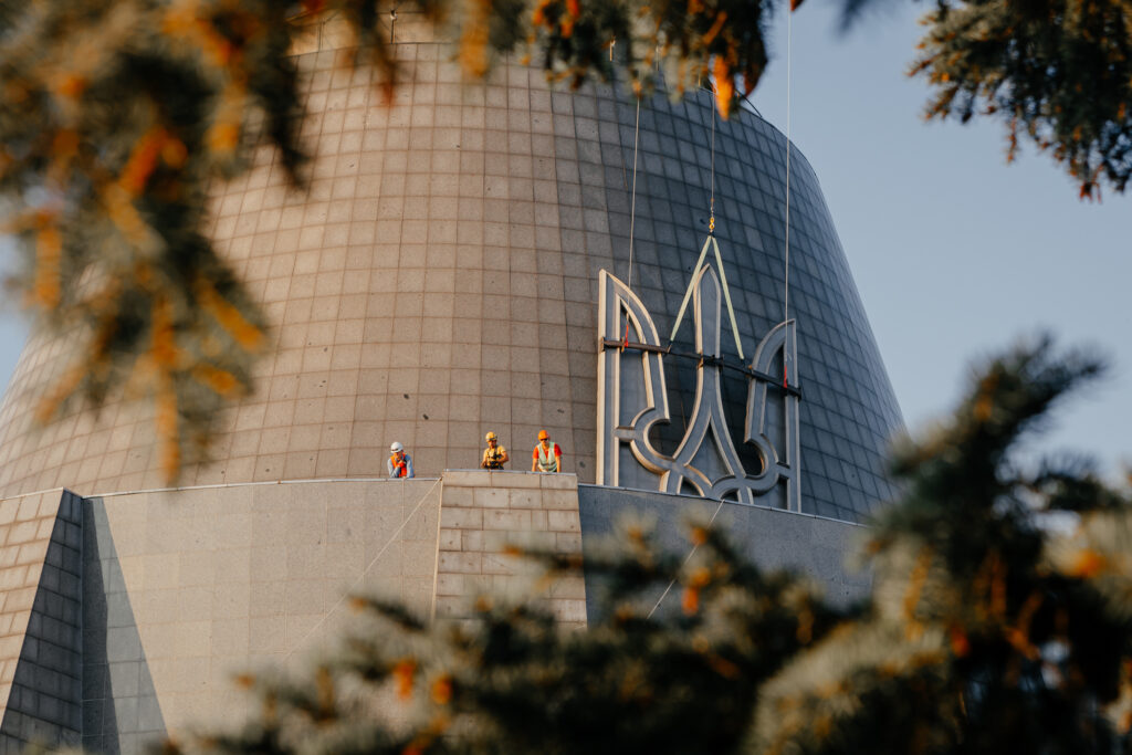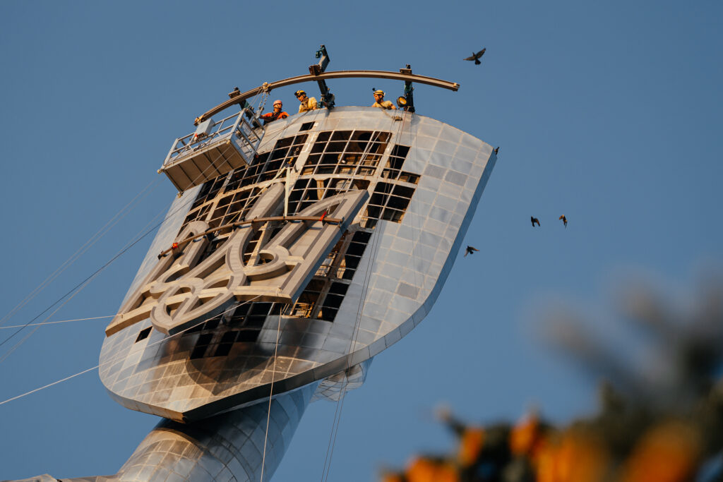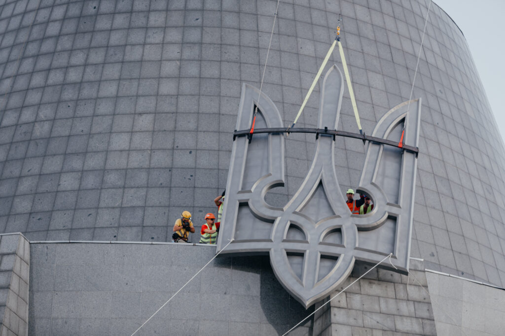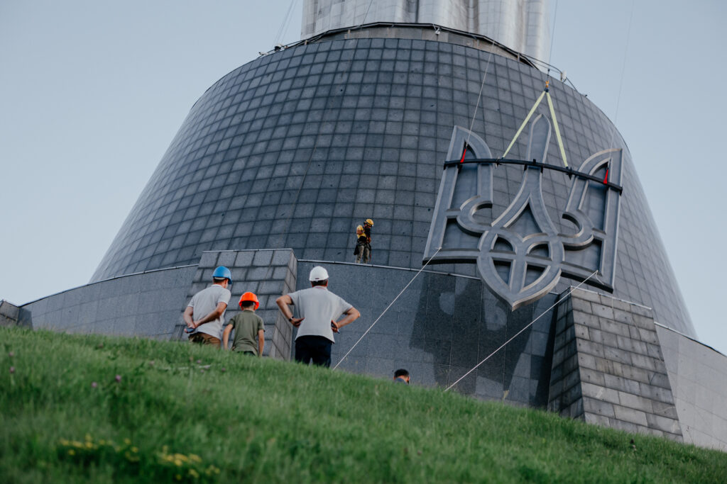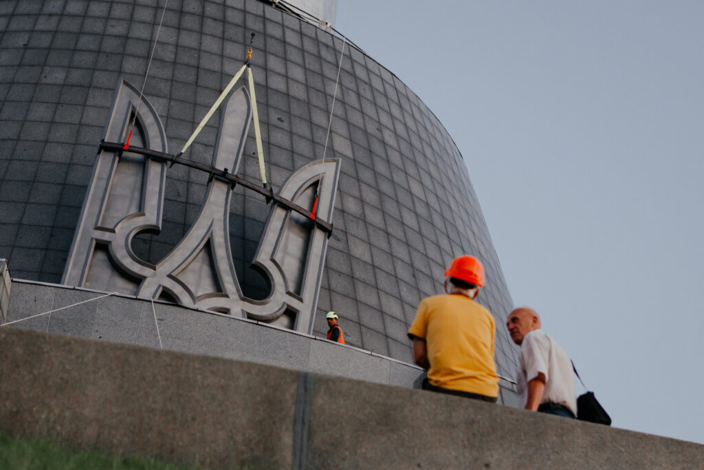 Роботи з остаточної фіксації тризуба на монументі триватимуть до 24 серпня.