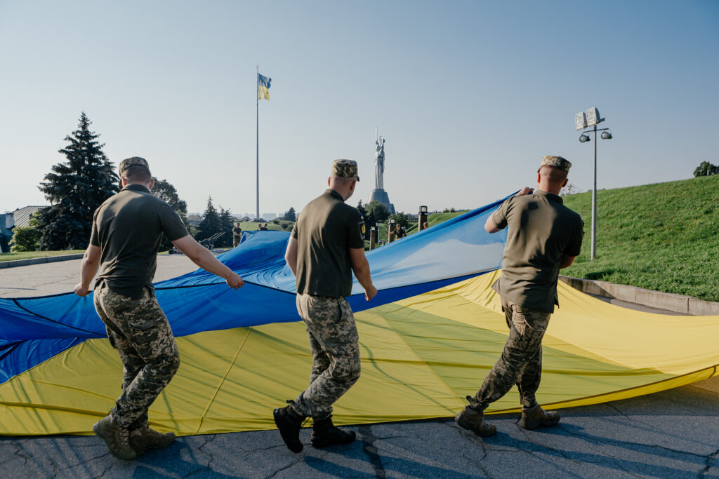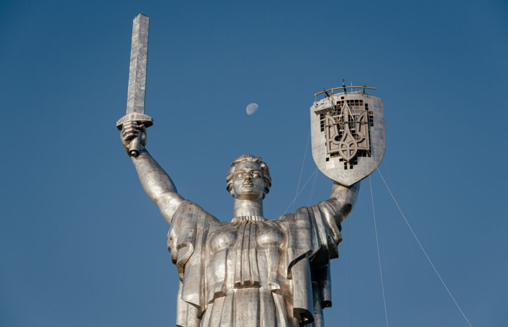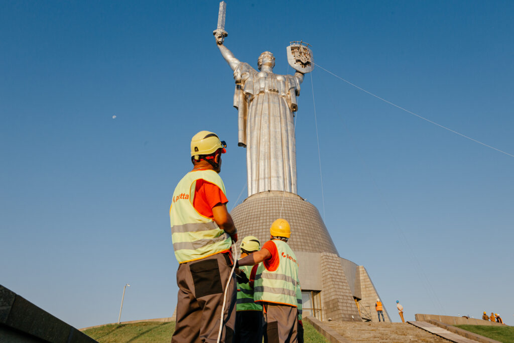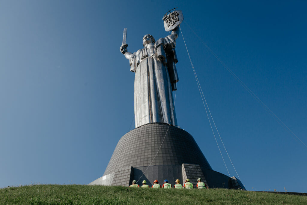 Підняття тризубу для встановлення на щиті монументу «Батьківщина-Мати» почалося ввечері у суботу і завершилося вранці, у неділю 6 серпня.
