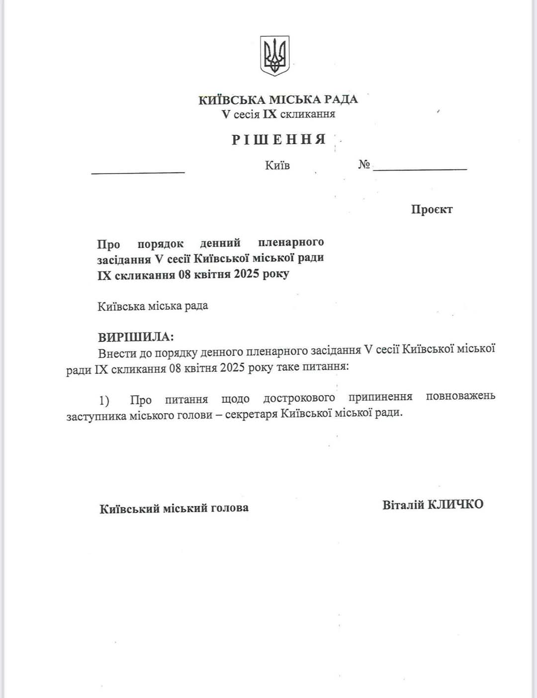 Завтра, 8 квітня, у Київраді — принципове голосування. Питання про відставку заступника міського голови – секретаря Київради Володимира Бондаренка