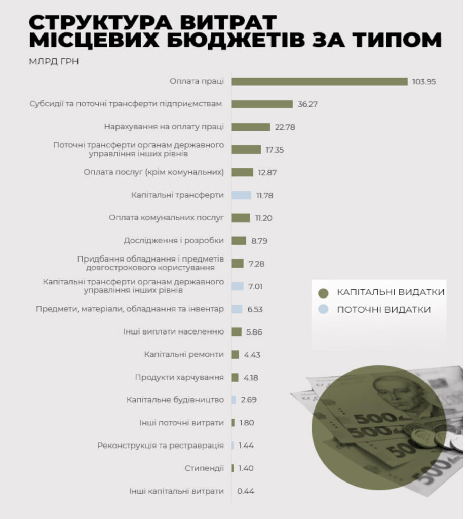 Водночас у місцевих бюджетів відсутня функція або обов’язок фінансувати армію. Все, на що вони мають право витрачати бюджетні кошти – це укомплектування місцевої оборони. До речі, для багатьох може стати несподіваною інформація про те, що капітальні видатки в місцевих бюджетах становлять менше 13 відсотків. Левова частка припадає на оплату праці, субсидії, поточні трансферти підприємствам та органам держуправління.