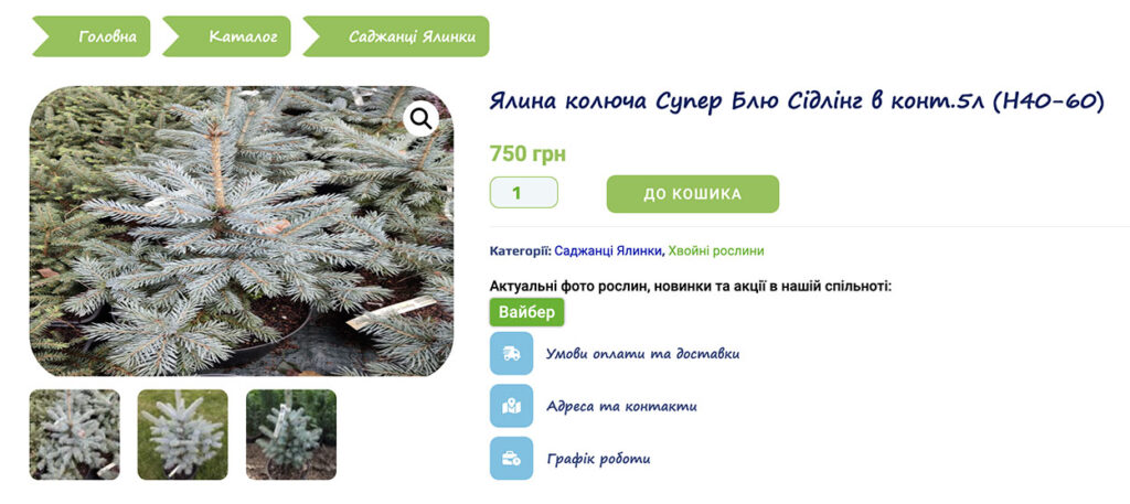 Наступне придбання – ялина колюча блакитна сорту «Супер Блю Сідлінг». 40 таких дерев закупили по 10 тисяч гривень за кожне. Ціна в інтернеті – 750 гривень. Отже 750 проти 10 тисяч 600 гривень. Перевищення ціни на майже 10 тисяч на кожному з 40 дерев. Тобто майже 400 тисяч гривень переплати лише на одній позиції.