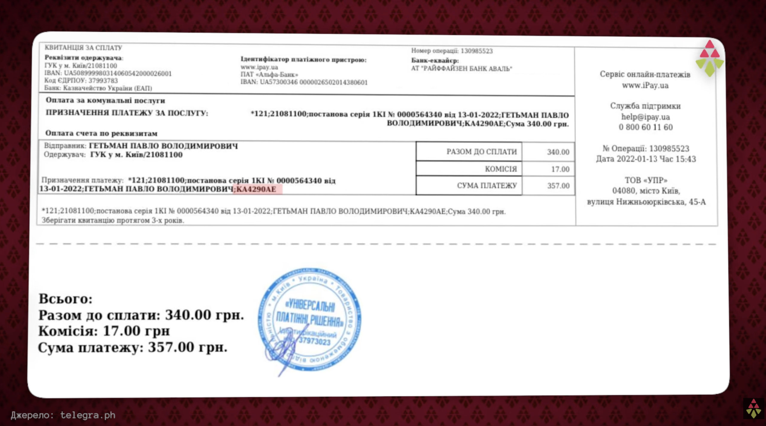 Через оприлюднену мером квитанцію про штраф за паркування стали відомі не тільки реальні номери авто, але й ім’я водія міського голови — Гетьман Павло Володимирович. В Єдиному реєстрі судових рішень є дві адміністративні справи (у 2017 та 2024 роках), порушені проти особи з точно таким же прізвищем, імʼям та по-батькові як і у водія Віталія Кличка. Предметом обох проваджень було керування транспортним засобом у стані алкогольного сп’яніння.