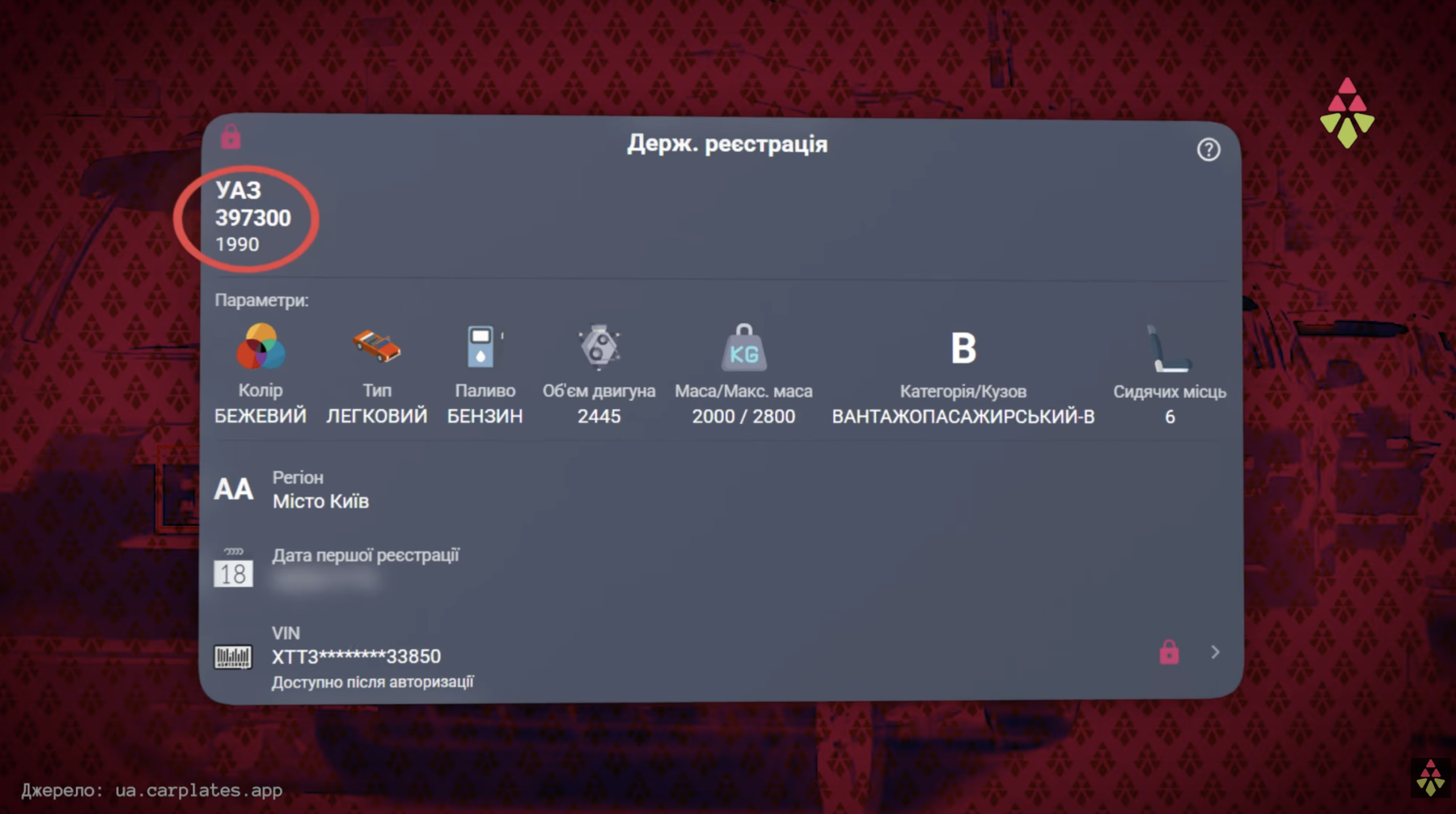 Наприклад, за номером АА9957ІК, який бачили на одному з авто супроводу, в базі даних зареєстрований не сучасний позашляховик, а бежевий УАЗ 1990 року випуску – машина зовсім іншого класу та віку.
