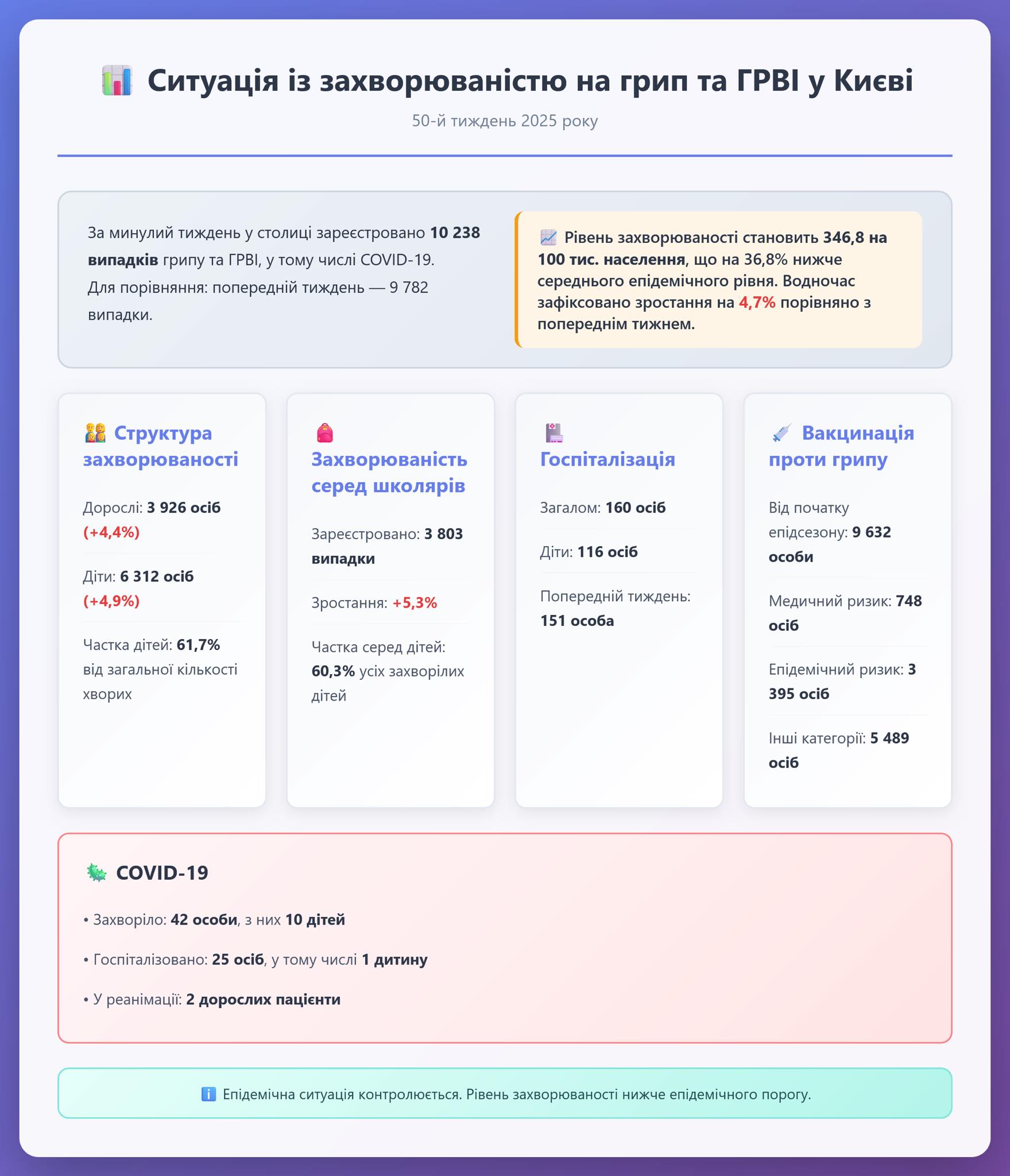 Серед хворих – 3 926 дорослих (+4,4%) та 6 312 дитини (+4,9%). Діти становлять 61,7 відсотка від загальної кількості хворих.