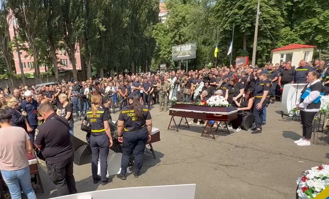 У Києві попрощалися з пожежниками-рятувальниками, які загинули під час ліквідації наслідків масованої російської атаки на столицю 6 червня.