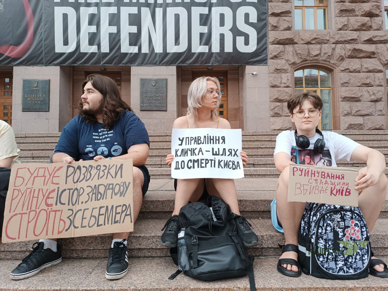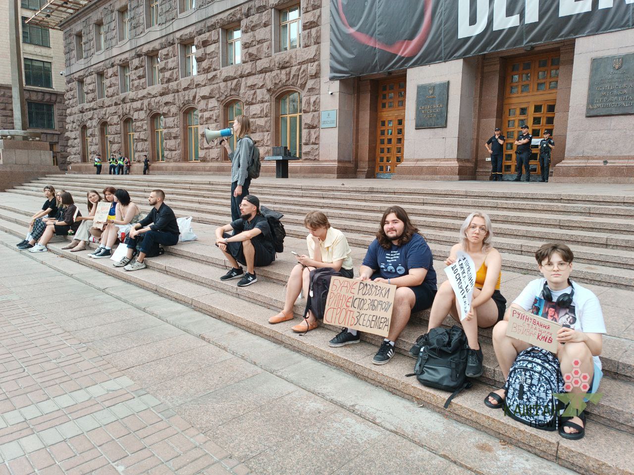 До адмінбудівлі Київради, КМДА прийшли громадські захисники історичної спадщини – студенти, працівники ІТ-сектору, екологи, дослідники древнього Києва.