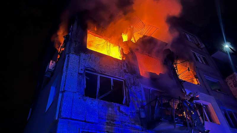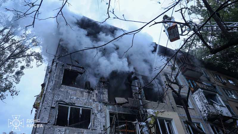 У Солом’янському районі є часткове руйнування п’ятиповерхової житлової будівлі. Cпалахнула пожежа. Постраждала людина.