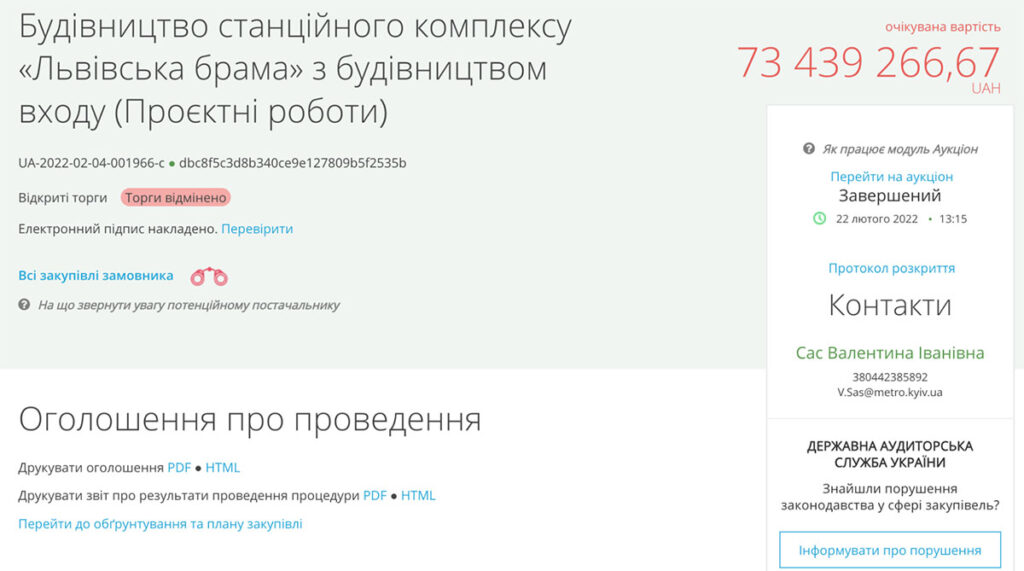 Проте «Київський метрополітен» таки може давати рух цій справі. Востаннє відновити станцію намагалися в лютому 2022 року, ще до повномасштабного вторгнення рф в Україну. Тоді КП «Київський метрополітен» оголосило тендер на проєктування входу станції метро з очікуваною ціною 73,4 мільйона.