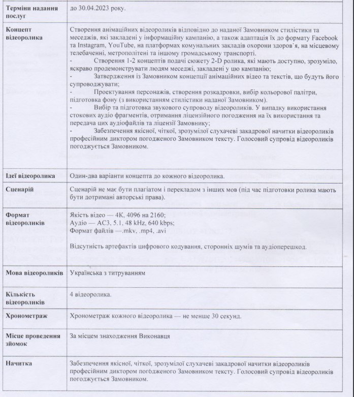 У 2024-му за виготовлення шести роликів фірма «ТВ Креатив», бенефіціаром якої, за даними Youcontrol, є М’яновський Богдан Станіславович, одержала з бюджету 139 тисяч 568 гривень. У технічних вимогах до закупівлі зазначається, що хронометрах кожного відеоролика має бути не більше 60 секунд, якість відео – 4 К, голосовий супровід. У кожному ролику має бути не більше п’яти персонажів.