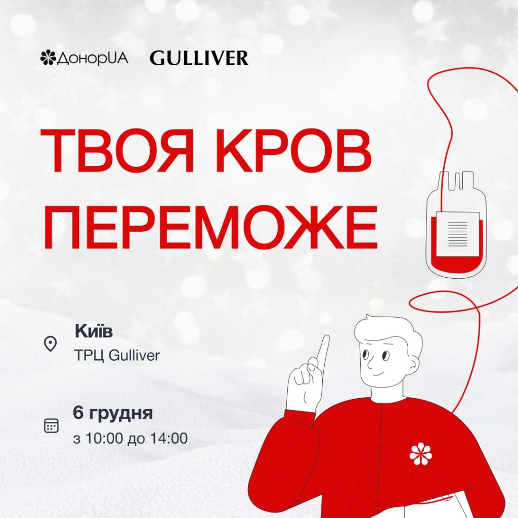 У середу, 6 грудня, у столичному ТРЦ Gulliver відбудеться захід «Твоя кров переможе», організований ДонорUA.