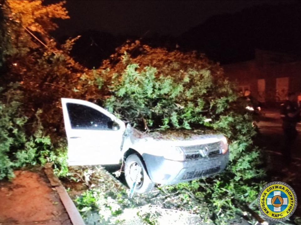 «22 липня о 21:35 до оперативного чергового КАРС надійшло повідомлення про те, що на вулиці Лаврській, у Печерському районі міста, потрібна допомога в прибиранні поваленого на дорогу та припаркований автомобіль дерева», – повідомили у «Київській службі порятунку».