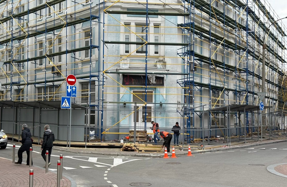 Будівлю завісили декоративним риштуванням