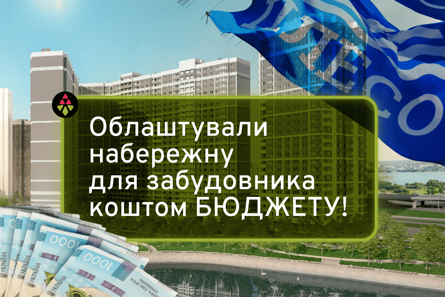 З місцевого бюджету на це витратили майже 48,5 мільйона гривень – аби мешканці ЖК «Рів’єра» мали гарну набережну й сухі підвали, а девелопер зекономив на гідроізоляційних роботах.