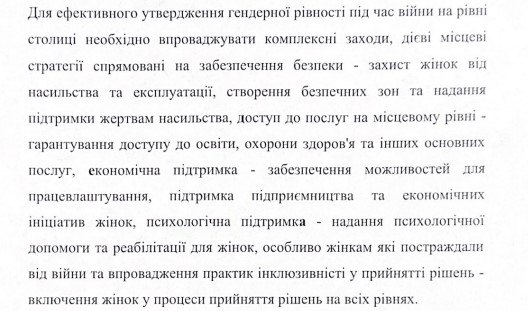 «Для ефективного утвердження гендерної рівності під час війни на рівні столиці необхідно впроваджувати комплексні заходи…».