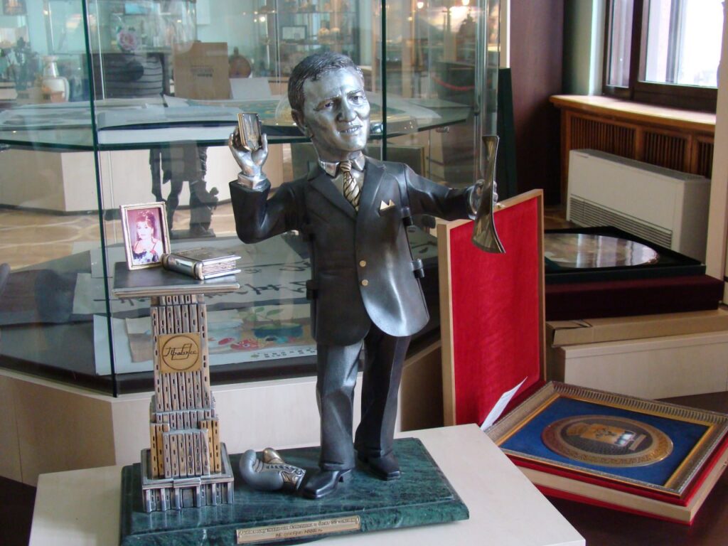 У перший же день відкриття музею, розрізаючизаради піар-кампанії червону стрічку, Черновецький похвалився журналістам, що, мовляв, 90 відсотків експонатів – особисті подарунки «на дуже великі суми». З цієї категорії і скульптурна композиція «Леонід Черновецький», яку презентував мерові син Степан. Вона складається з фігури глави сім’ї, що тримає в правій руці державний герб, офісної висотки особистого банку, а також боксерської рукавички Черновецького, що лежить біля ніг. Подейкували, що деякі деталі цього творіння – золоті. І що, мовляв, боксерська рукавичка символізує перемогу Черновецького над основним суперником – Віталієм Кличком – під час виборів міського голови.