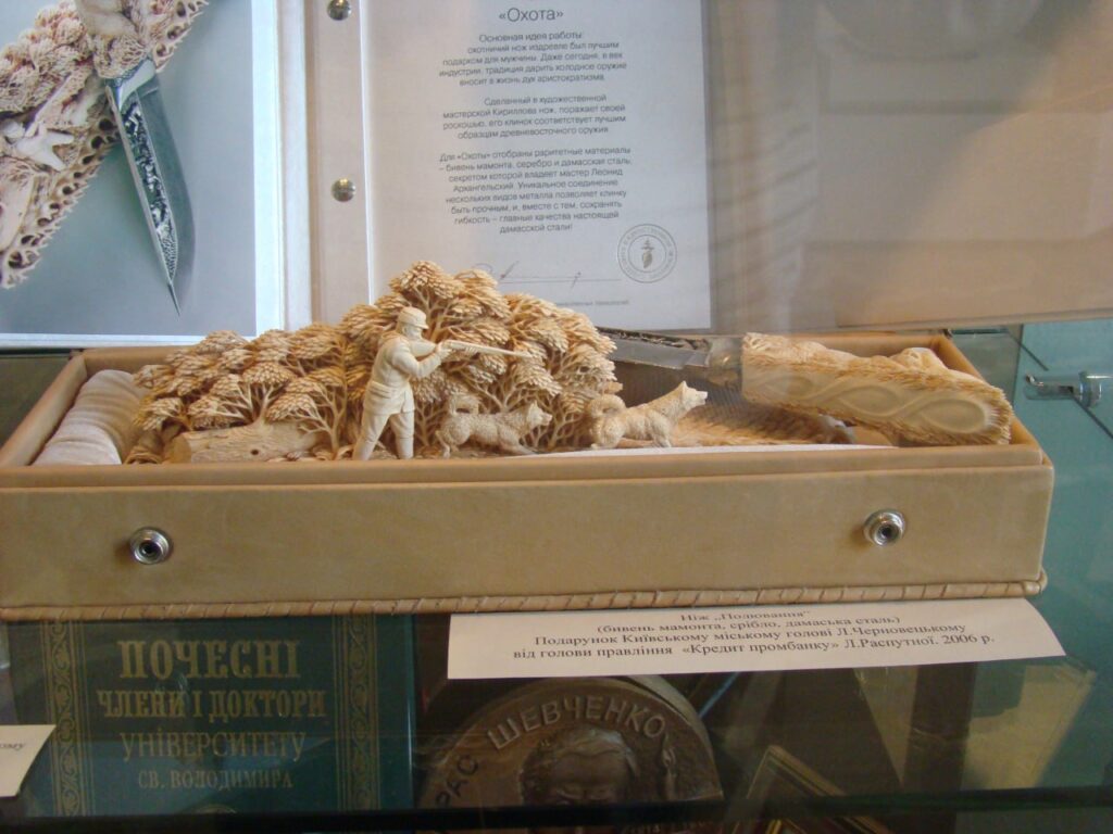 Мені, журналістові, у той період вдалося побувати в цьому музеї. Під склом у залі мою увага привернули ніж з дамаської сталі з різьбленою рукояткою з бивня мамонта (подарунок Черновецькому від голови правління Кредитпромбанку» Л. Распутної, 2006 р.), срібна монета номіналом 100 гривень та вагою 1 кілограм(її з нагоди відкриття музею презентував Нацбанк України). Був і цікавий документ – сертифікат на 1000 кущів троянд (подарунок Києву від Нідерландів, 2006 рік).