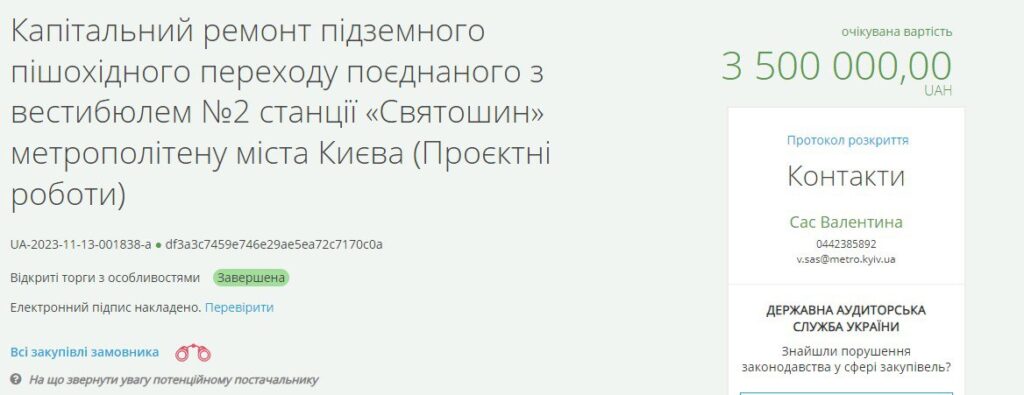 А в грудні 2023 року адміністрація метрополітену уклала угоду на створення проєкту ремонту підземного переходу станції «Святошин». Згідно із цим договором, підприємство «Укртранскаскад» має отримати за роботу 3,5 мільйона гривень. Загалом виходить, що на ремонт станції та проєкт з ремонту переходу витратили понад 233 мільйони гривень, пише kiev.informator.ua