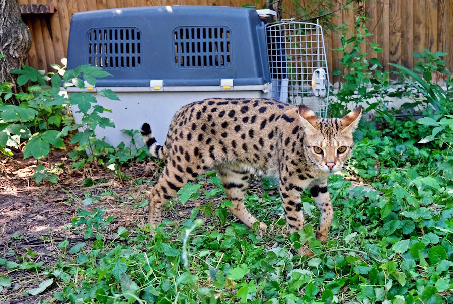 Кішка-саванна Маля, передана Київському зоопарку волонтерами, успішно пройшла карантин і тепер досліджує свої нові володіння.