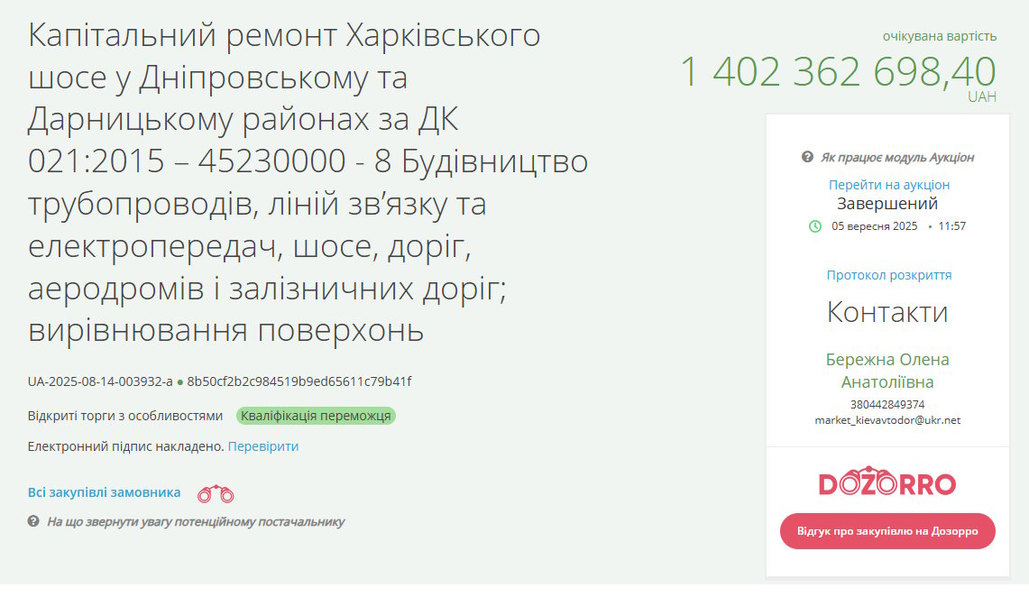 За даними Prozorro, тендер на капітальний ремонт 5,4 кілометра Харківського шосе за 1,26 мільярда гривень виграло ТОВ «Група компаній «Автострада» – те саме, яке займається добудовою метро на Виноградар. Суперником «Автостради» цього разу стало ТОВ «Автомагістраль-Південь». За підрахунками ГО «Пасажири Києва», разом із компаніями «Онур» та ТОВ «Ростдорстрой», яке пов’язують із мером Одеси Геннадієм Трухановим, «Автострада» та «Автомагістраль-Південь» є основними гравцями на «дорожньо-ремонтному» ринку Києва.