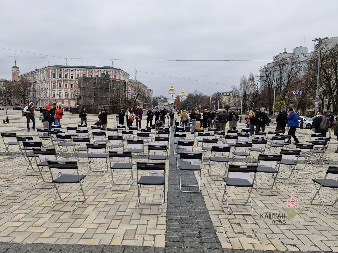 У суботу, 15 листопада, на Софіївській площі відбулася акція «Порожні стільці» на підтримку журналістів, письменників, діячів культури та правозахисників, що зникли безвісти, були ув’язнені чи перебувають у неволі через війну росії проти України.