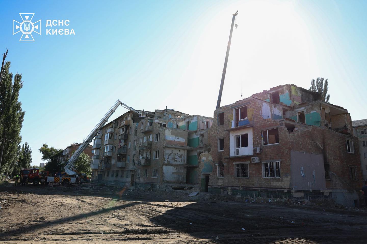 Наразі знищену частину житлового будинку у Дарницькому районі повністю розібрано, вивезено 3150 тонн будівельних конструкцій та сміття.