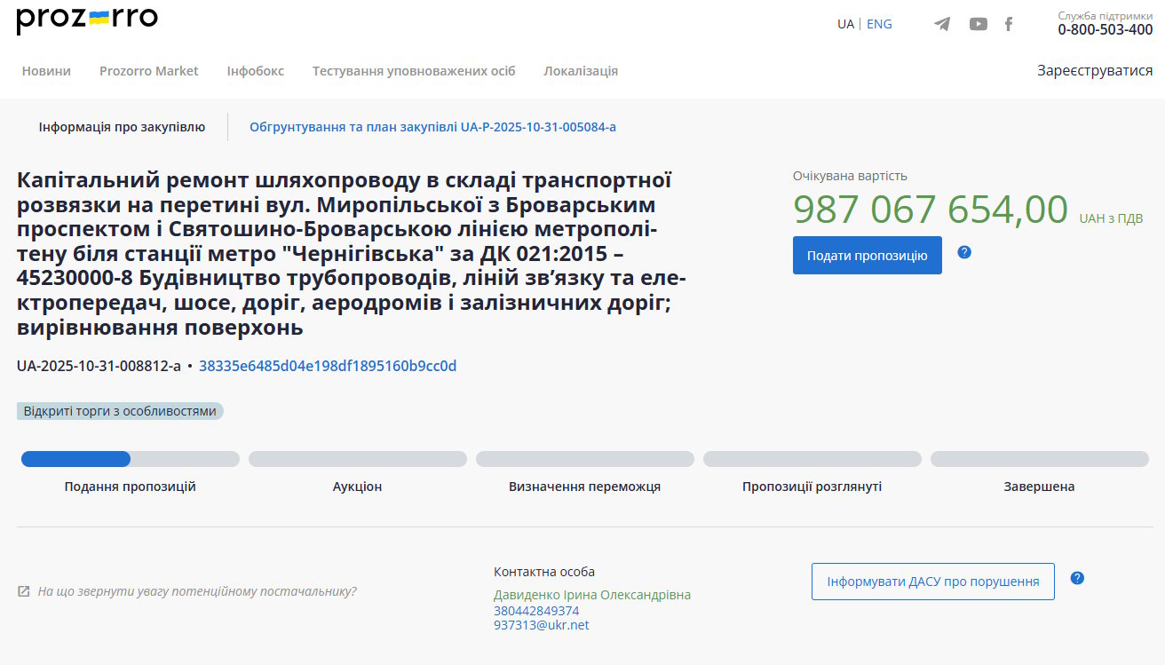 Відповідні дані оприлюднено на сайті електронних закупівель Prozorro.