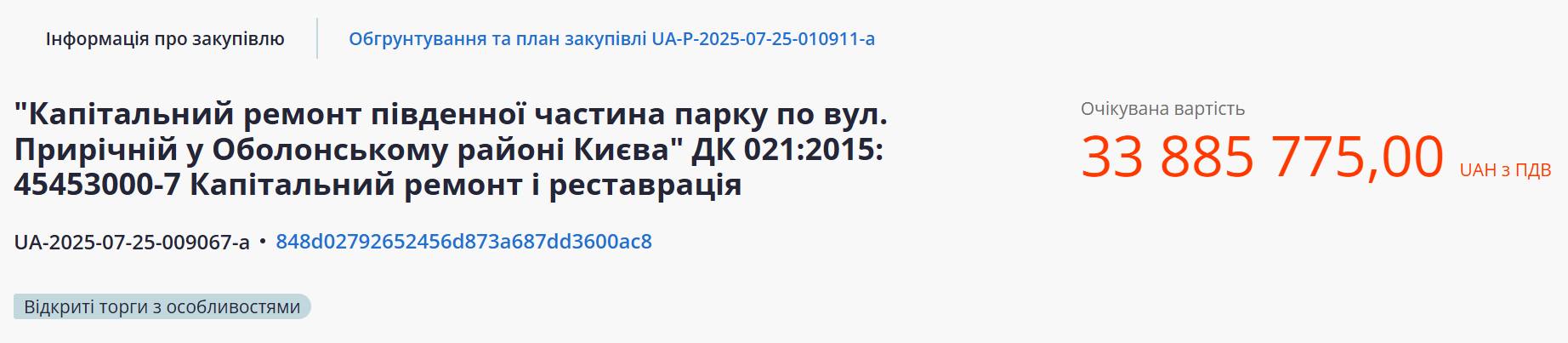Але наприкінці липня пролунали перші тривожні дзвіночки. 25 липня «Київзеленбуд» оголосив тендер на так званий «капітальний ремонт південної частина парку по вул. Прирічній у Оболонському районі Києва». Згідно з інформацією про закупівлю, розміщеною на Prozorro, кошторис робіт становить 33,9 мільйона гривень, і джерелом фінансування цієї закупівлі є аж ніяк не внески меценатів, а кошти київського бюджету.