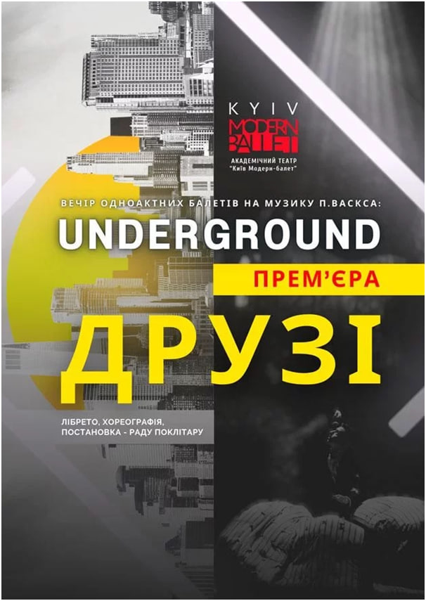 «Underground» та «Друзі» – нова одноактна постановка відомого хореографа Раду Поклітару, на музику латвійського композитора, Петеріса Васкса.
