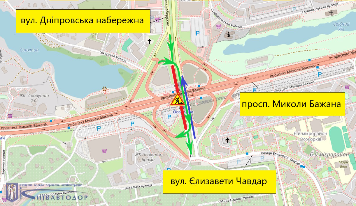 Від сьогодні та орієнтовно до серпня 2026 року частково буде обмежено рух транспорту шляхопроводом на перетині проспекту Миколи Бажана з Дніпровською набережною.