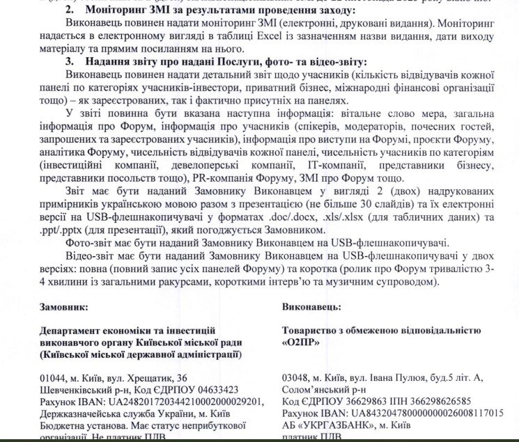 Після завершення форуму виконавець повинен був надати замовникові, тобто КМДА, звіт про виконану роботу.