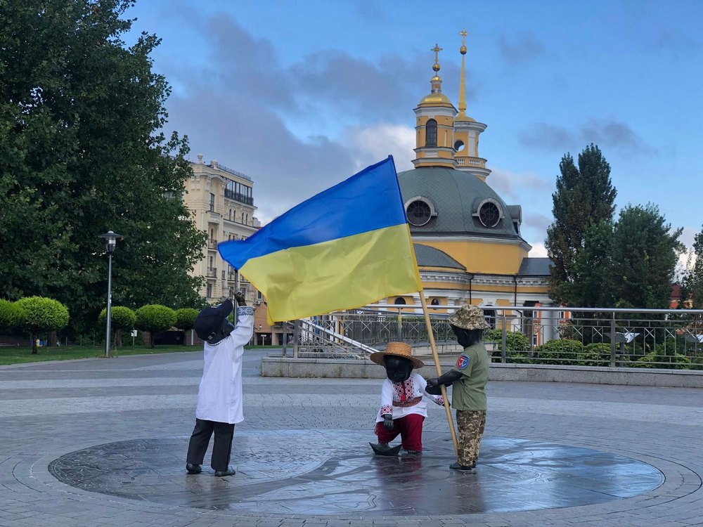 З нагоди Дня Державного прапора і Дня Незалежності України скульптури малюків-засновників Києва, розташовані на Поштовій площі, традиційно отримали новий святковий одяг.