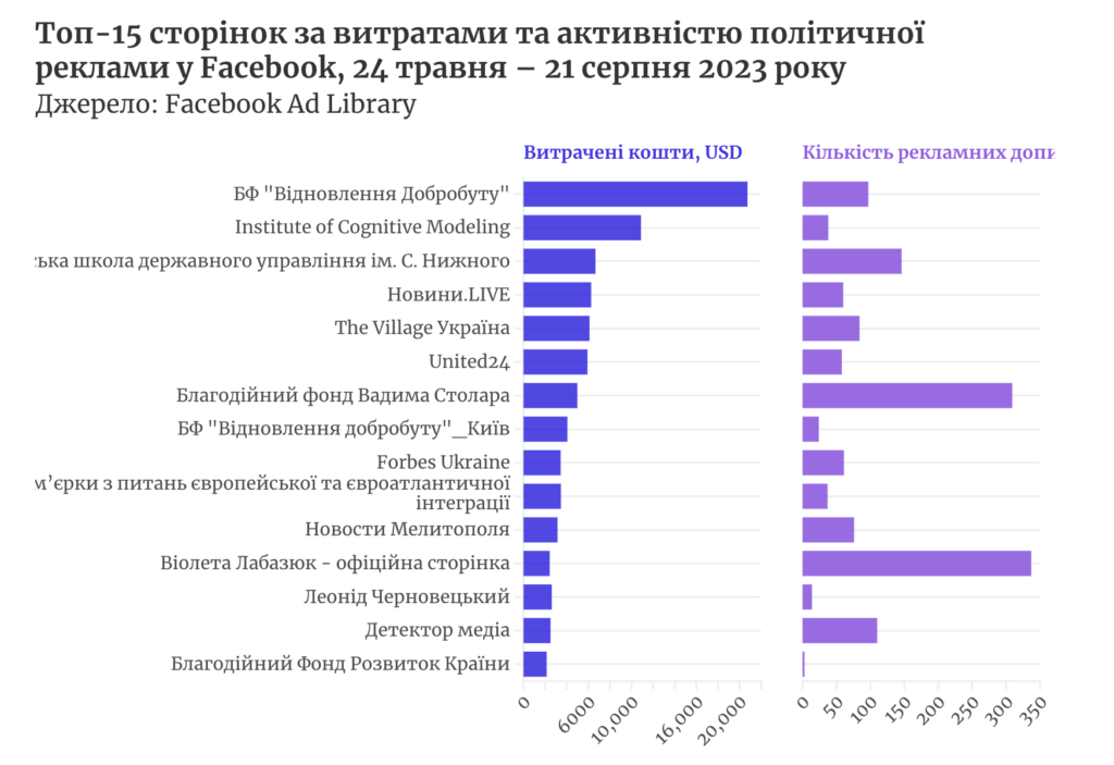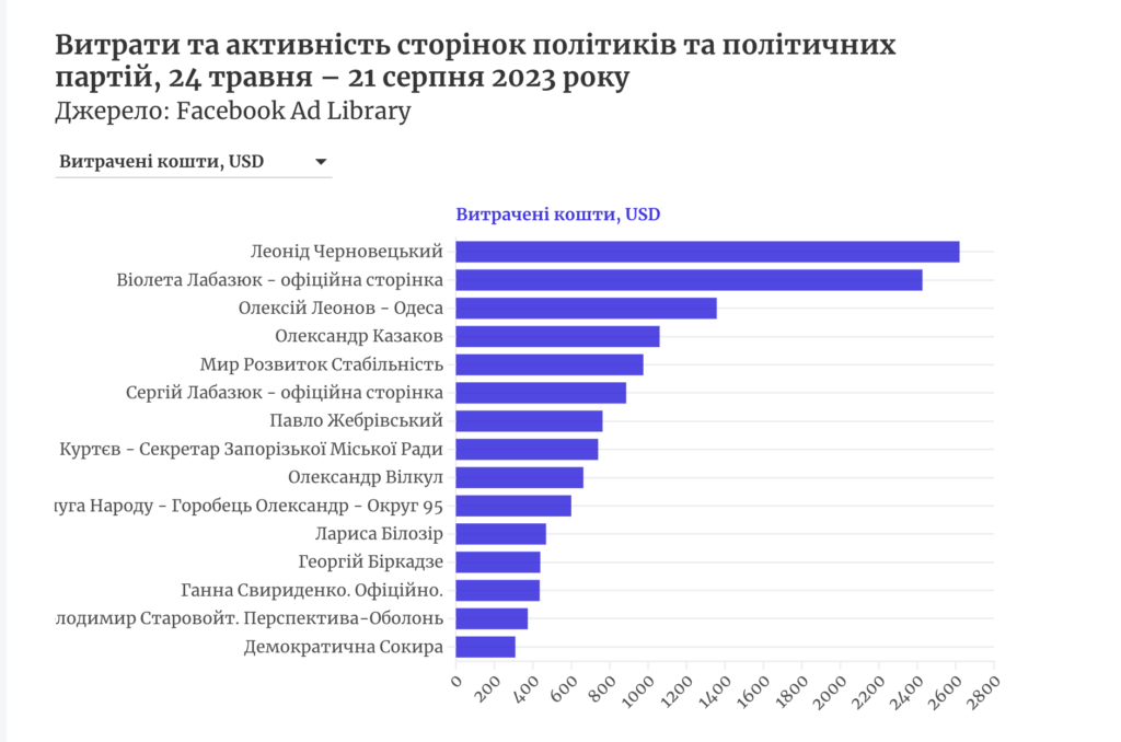 «Із 24 травня до 21 серпня 2023 року політики, ЗМІ та інші сторінки опублікували у Фейсбуці понад 7 тисяч рекламних дописів політичного змісту. Їхня вартість сягнула 173,5 тис. дол. США (близько 6,37 млн грн)», – повідомили в «ОПОРі».