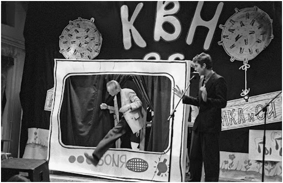 Перші прояви українського сценічного гумору можна простежити ще у вертепному театрі (ляльковий театр), що виник у XVII столітті. Вертепні вистави зазвичай проводили в двоповерховій дерев’яній скриньці, що складалася з двох частин – верхньої та нижньої сцени, де вища сцена відтворювала релігійні сюжети, тоді як нижня ставала майданчиком для сатири, у котрій висміювали представників влади, чиновників та багатіїв. Уже тоді використовували гротеск та гіперболу, створювали перші карикатурні образи.