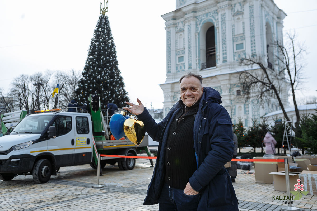 Як повідомляє фотокореспондент Каштан.NEWS, цього року верхівкою ялинки слугуватиме стилізований тризуб, а гілки будуть прикрашені синьо-жовтими сердечками.