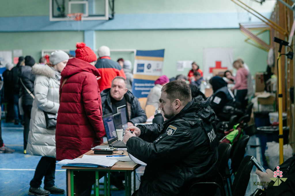 У штабі з ліквідації наслідків надзвичайної ситуації жінка зареєструвалася на отримання допомоги.