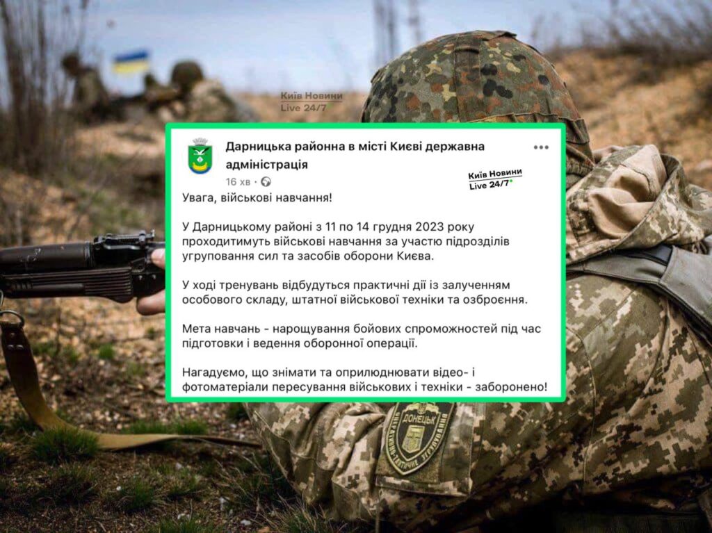 Сьогодні в Дарницькому районі стартуть військові навчання за участю підрозділів угруповання сил та засобів оборони Києва