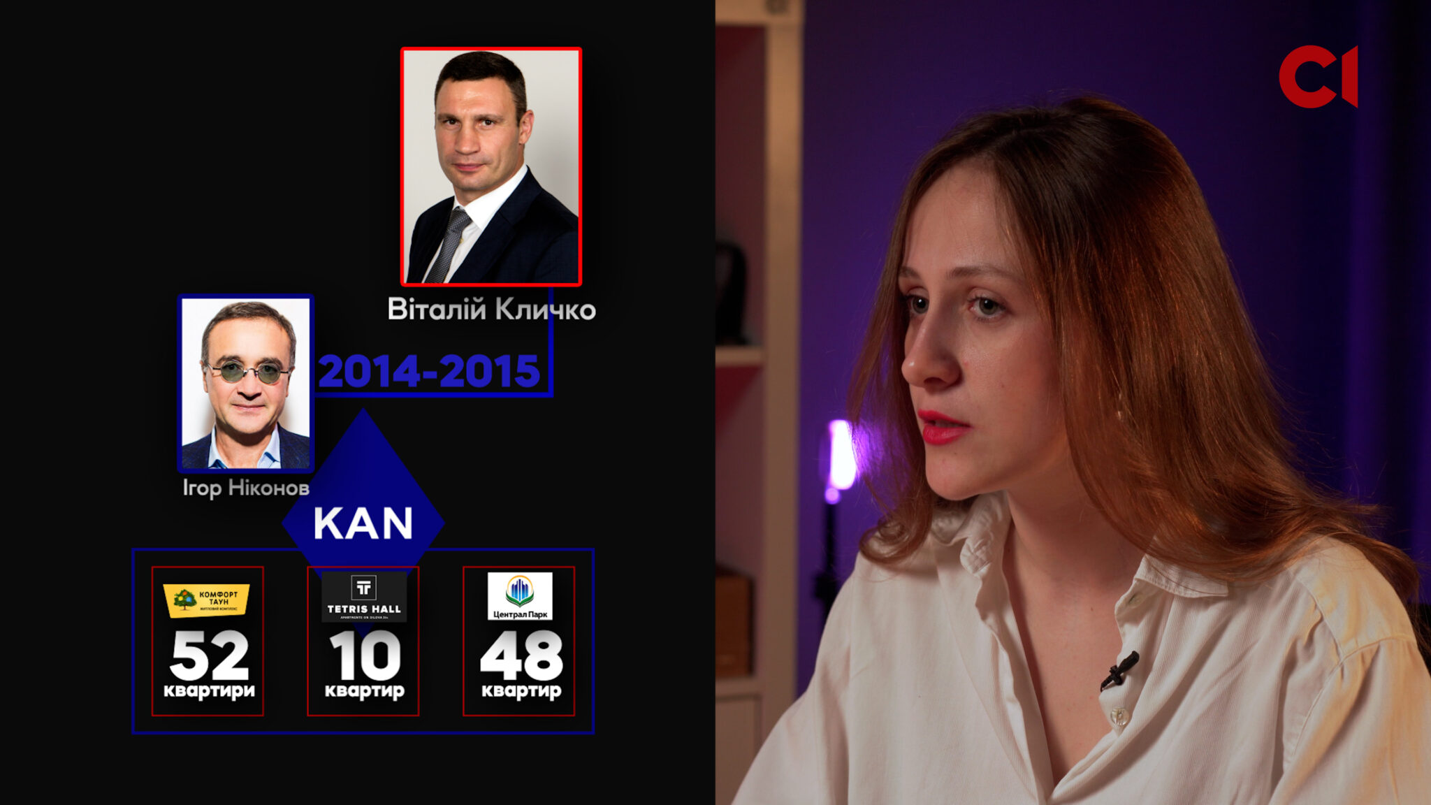 Водночас виявлено цікаву деталь: усі три комплекси, де журналісти знайшли десятки квартир Комарницьких, обʼєднує один забудовник — компанія KAN Development. Її засновник Ігор Ніконов упродовж 2014-2015 років був першим заступником голови КМДА Віталія Кличка. Слід зауважити, що торік у доньки Ніконова виявили паспорт РФ.