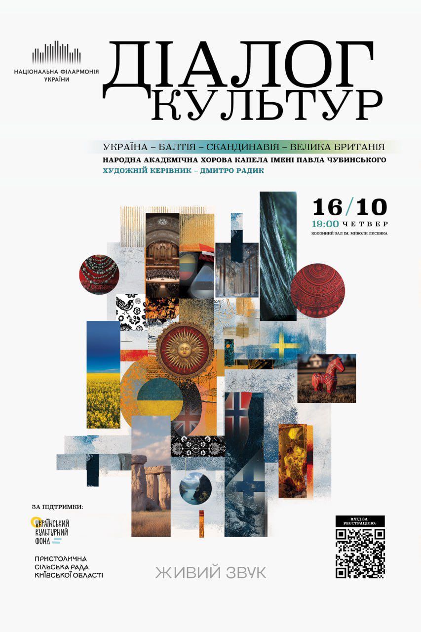 У Національній філармонії України завтра, 16 жовтня, прозвучать твори українських і європейських композиторів у межах хорового проєкту «Діалог культур: Україна – Балтія – Скандинавія – Велика Британія»
