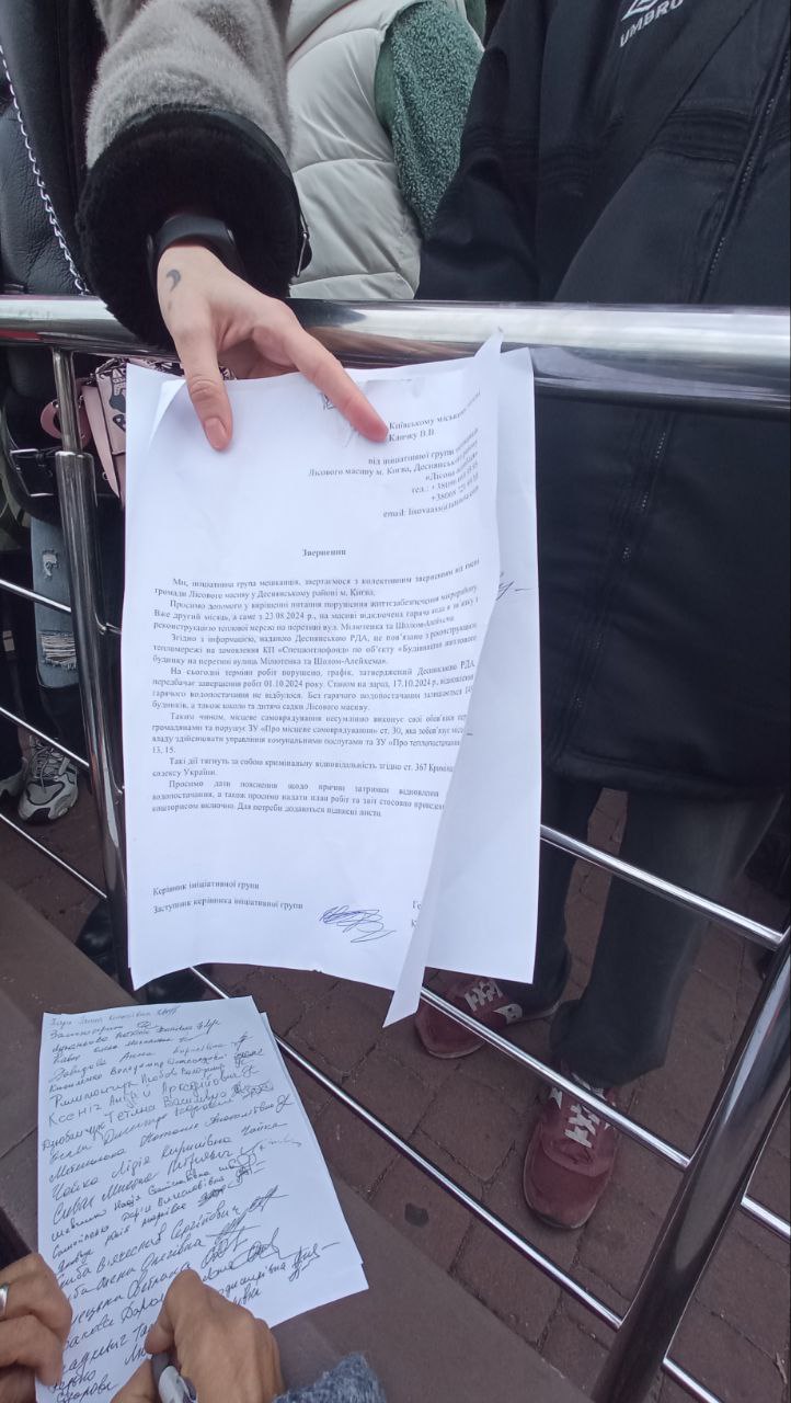 Враховуючи неоднозначність ситуації учасники акції написали листа на ім’я міського голови Києва Віталія Кличка, в якому просять надати пояснення щодо причин затримки водопостачання та конкретних термінів його відновлення.