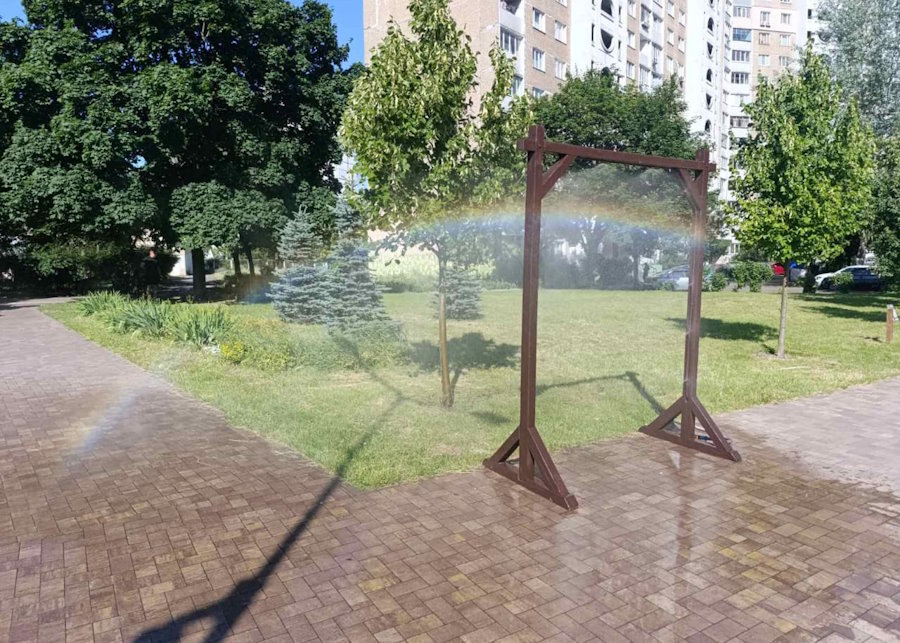 Через спеку в київських парках, скверах та на центральних вулицях будуть встановлені рамки-розпилювачі води, під якими можна буде охолодитися.