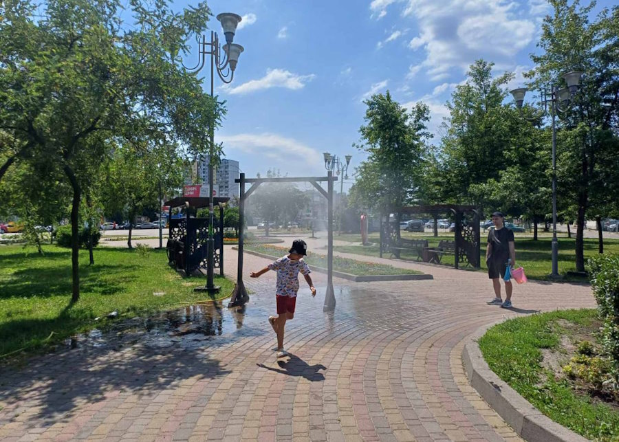Через спеку в київських парках, скверах та на центральних вулицях будуть встановлені рамки-розпилювачі води, під якими можна буде охолодитися.