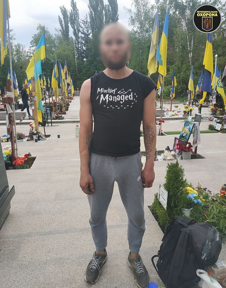 Муніципали затримали чоловіка, який крав речі з могил загиблих Героїв на столичному кладовищі.