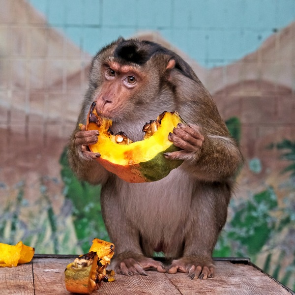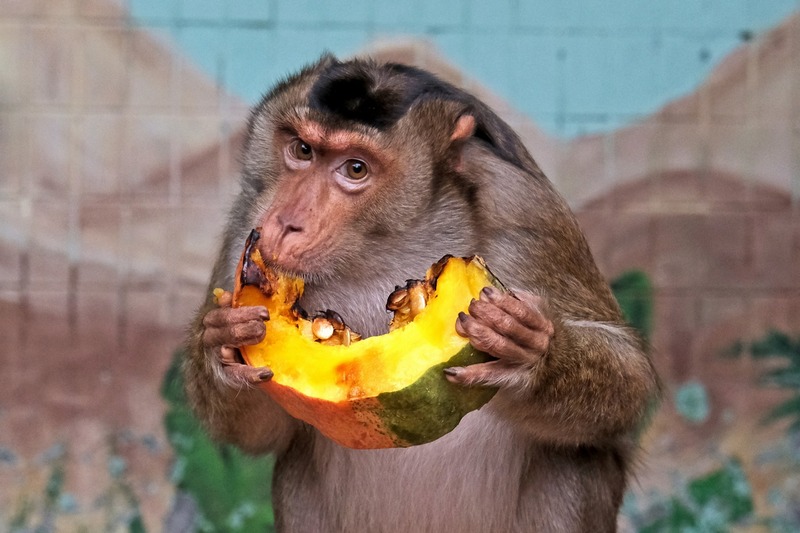 Цього разу показові годування проходять у Нижньому парку: гарбузами смакують павіани анубіси, павіани гамадрили, чорні мангобеї, макаки лапундери, зелені мавпи, мавпи Бразза, мавпи-гусари, сіаманги та сріблястий гібон.