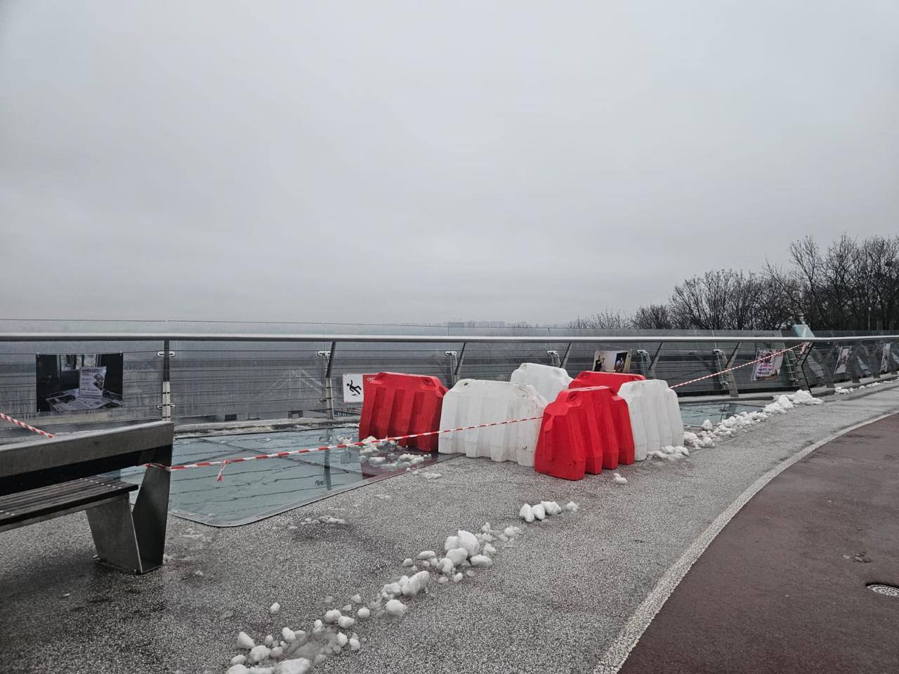 За інформацією фахівців, скляні конструкції мосту виготовлені з багатошарового триплексу, що забезпечує їхню безпечність навіть у разі пошкодження. Водночас процес заміни скла вимагає стабільної плюсової температури. Адже за низьких температур скло та монтажні матеріали змінюють свої геометричні параметри, що може призвести до некоректного монтажу та подальших деформацій