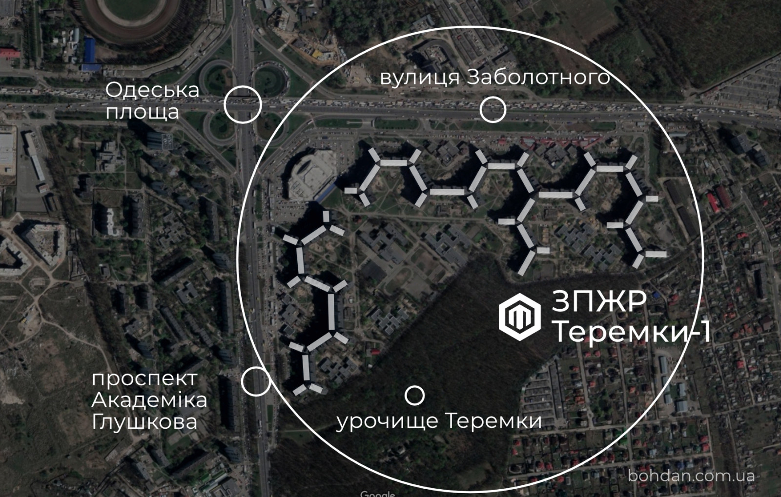 За задумом архітекторів, на Теремках мав виникнути величезний громадський центр для місцевих мешканців з кінотеатром і універсамами, громадськими пральнями, ательє, перукарнями, побутовими майстернями, мали бути бібліотеки та зали родинних свят, комплекси здоров’я з басейнами та спортивними секціями. Крім того, ще тоді планували, що мешканці нових осель могли б замовляти собі доставку необхідних харчів.