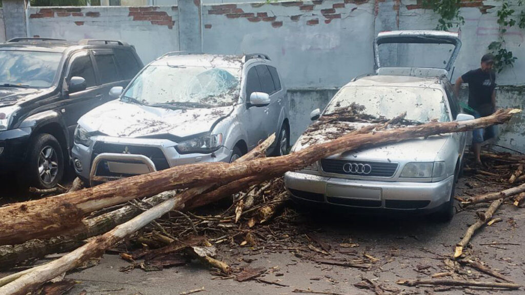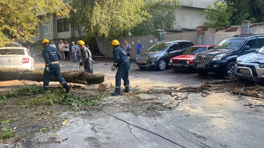 У Шевченківському районі столиці завалилося старе дерево та пошкодило кілька припаркованих поруч автомобілів.